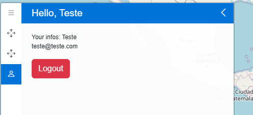 After login, the interface automatically adapts: the user tab starts displaying the logged-in account information and a logout button, in addition to unlocking new tabs in the sidebar menu, such as the polygon registration and editing options.